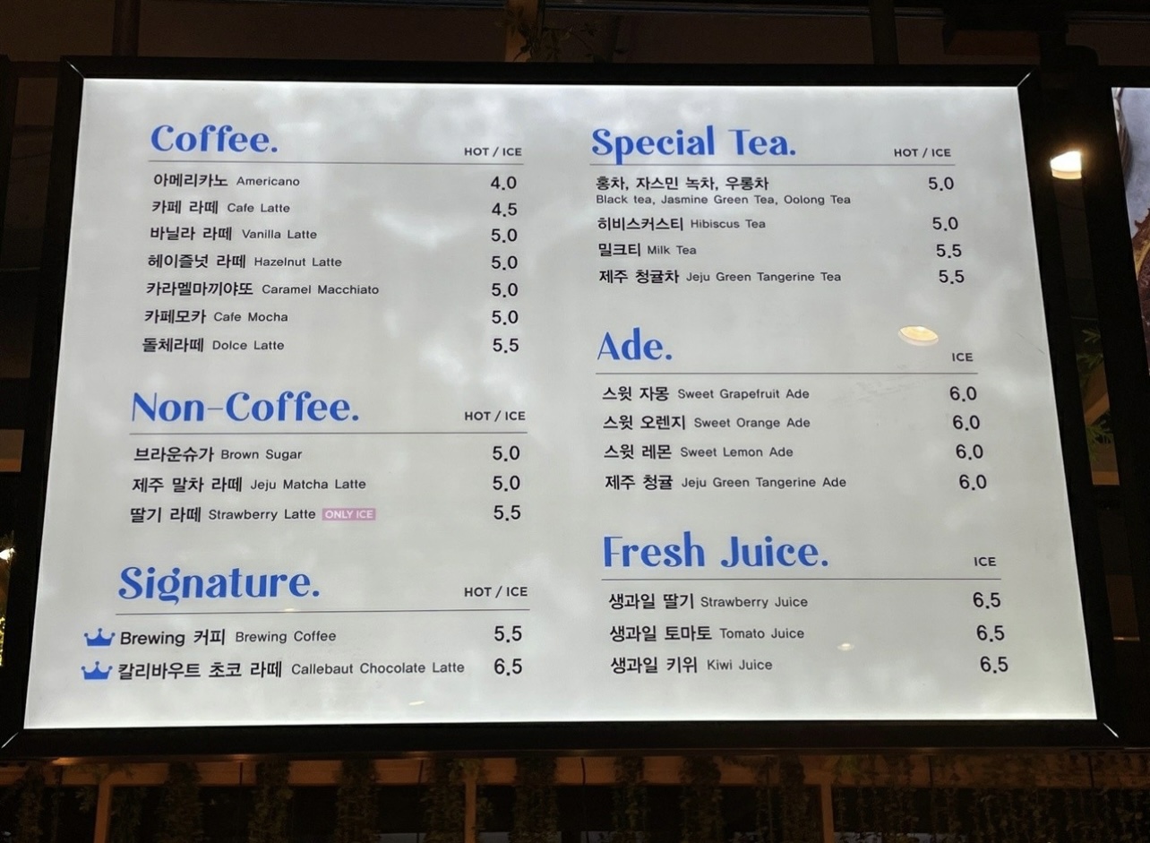 요즘 아메리카노 4000원에 먹기 쉽지 않은데 말이져 ㅎㅎ 아메 뿐만 아니라 다른 논커피,차나 에이드 종류의 가격도 꽤나 합리적이라는 생각이 들었어요! 저는 브라운 슈가 주문했네요 ㅋㅋ